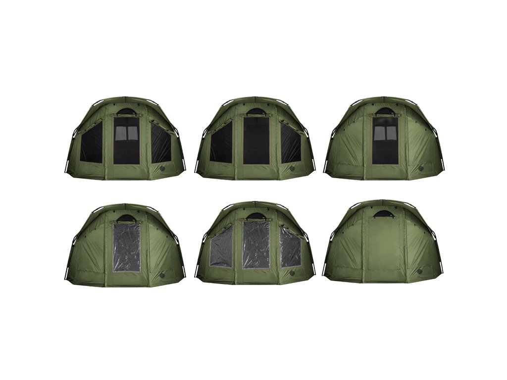V přední části se kromě dveří nacházejí také dvě okna. Obě jsou moskytiérová s možností transparentních fóliových oken, nebo možností plné textilie. Fóliová okna jsou součástí balení, a tak nemusíte dokupovat nic navíc! U modelu YURTA NEO jsme však mysleli i na lepší odvětrání bivaku a aplikovali jsme něj náš sofistikovaný systém CLIMA CONTROL. Tento systém je tvořen dvěma větráky na protilehlých stranách (nad vstupními dveřmi a nad zadním oknem). Díky tomuto důmyslnému systému lze zajistit cirkulaci vzduchu ve vnitřním prostoru bivaku v době, kdy není možné větrat pomocí velkých oken. Určitě ho oceníte zejména v noci, kdy výrazně napomáhá snižovat kondenzaci na vnitřních stěnách. Celý systém je navíc jednoduše ovladatelný zevnitř bivaku.