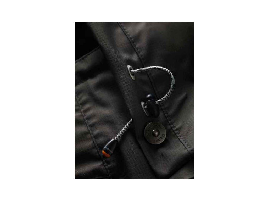 Kapsy, které mohou být otevřeny a zavřeny jednou rukou díky našim inovativním magnetickým zipem. Dvě magnetické kapsy zaručí jednoduché a rychlé otevírání. Na hrudi se nacházejí dvě hluboké kapsy s odolností vůči slané vodě. Kapuce je navržena tak aby při pohybu do stran netienila ve výhledu a sledovala pohyb hlavy. Kapuci lze oddělit od límce. Ramena a rukávy jsou vyrobeny tak aby poskytovaly maximální volnost při pohybu, tuto funkci ocení každý aktivní rybář. Pás bundy bundy Geoff Anderson TUVA je nastavitelný což zabraňuje jakémukoliv profouknutí.