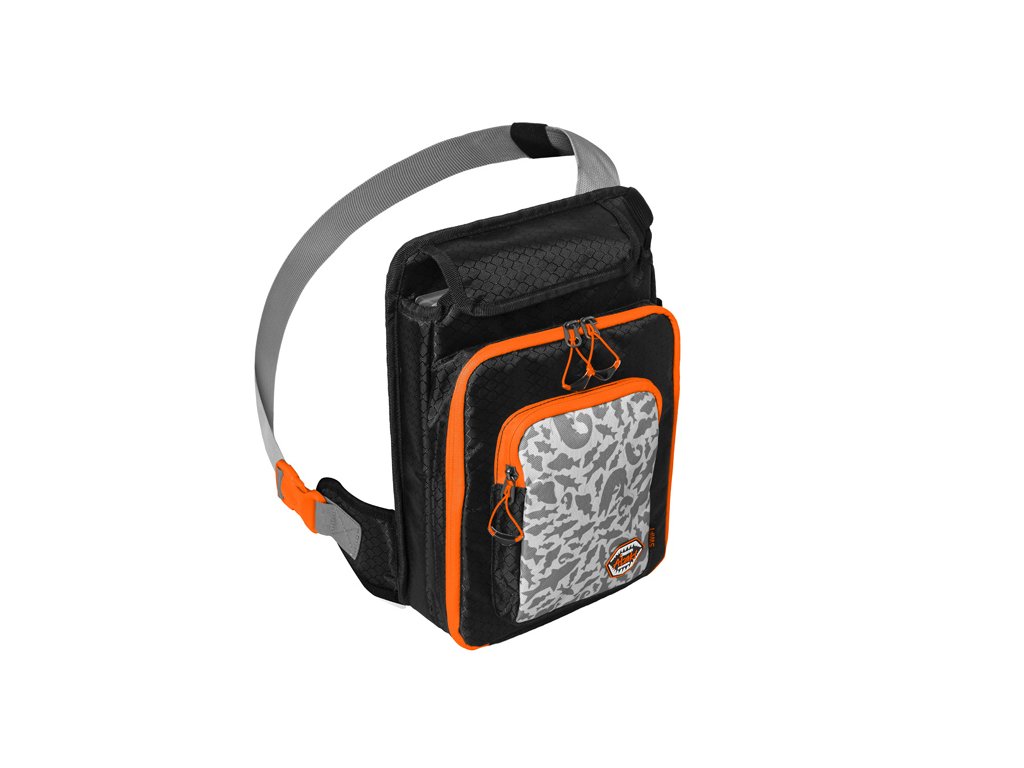 Crossbody je vybavena kvalitními zipy oranžové barvy. Zipy jsou vybaveny plastovými taháčky na oranžovém popruhu, který je na konci rozšířený, a proto je možné ho rychle uchopit. Doplňky oranžové barvy umožňují rybáři, aby byla taška dobře viditelná i za šera a věděl ji okamžitě najít. Crossbody je ušitá z lehké, ale přitom odolné látky černé barvy.