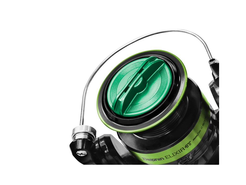 Designově nevšední naviják s přední brzdou za příjemnou cenu. To je Delphin ELIXIR, který svým zeleno-černým provedením vyčnívá z řady kompaktních navijáků, vhodných na přívlač, feeder či lov se splávkem.