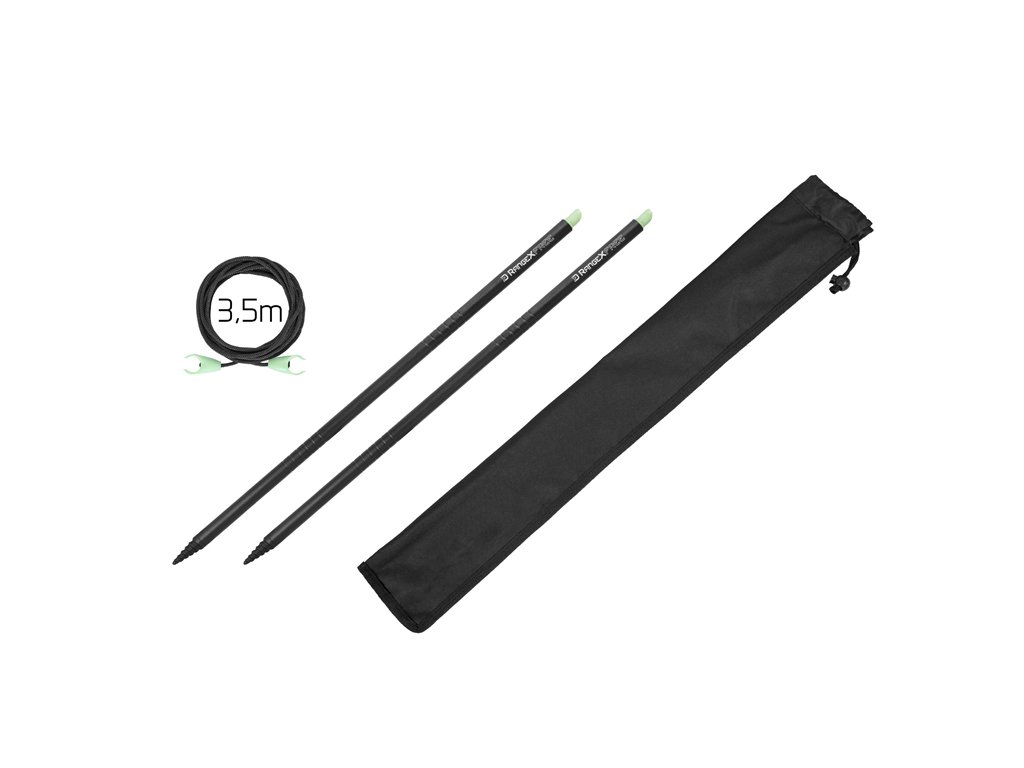 RangeX FREE se skládá ze dvou hliníkových tyčí se zářezy. Tyto zářezy slouží k tomu, aby se do nich vlasec či šňůra ukládaly a během vyměřování vzdálenosti tak nehrozí nežádoucí sklouznutí vlasce z tyče. Pro snazší používání v šeru či temnu jsou tyče vybaveny fosforeskujícími koncovkami, které se po nasvícení rozzáří. Pro lepší manipulaci při zapichování do země jsou distanční tyče na spodním konci vybaveny pevným hrotem se závitem. Samozřejmostí je vyměřovací provaz o délce 3,5 metry, který je na obou koncích opatřen oky pro uchycení o tyče. V základu RangeX FREE dostanete v praktickém textilním pouzdře tak, abyste měli vždy vše pohromadě.