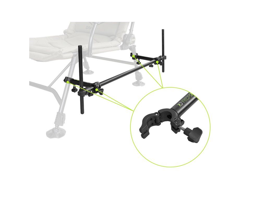 Důmyslně propracovaný a maximálně univerzální držák feederových prutů, který lze připevnit na většinu rybářských křesel dostupných na trhu.