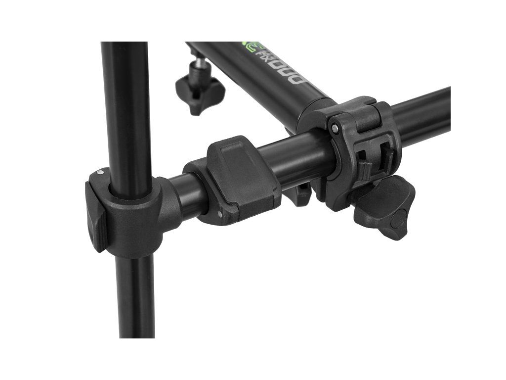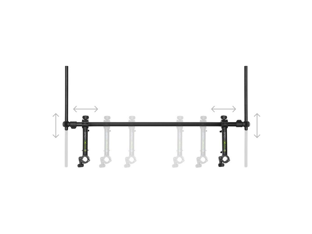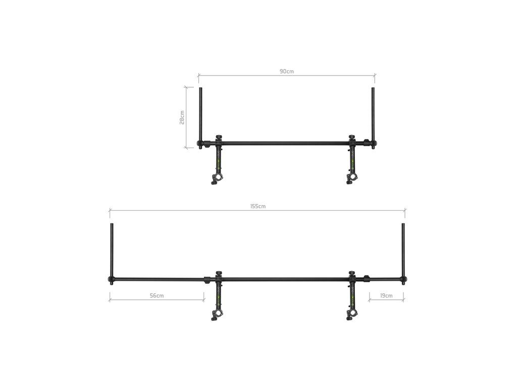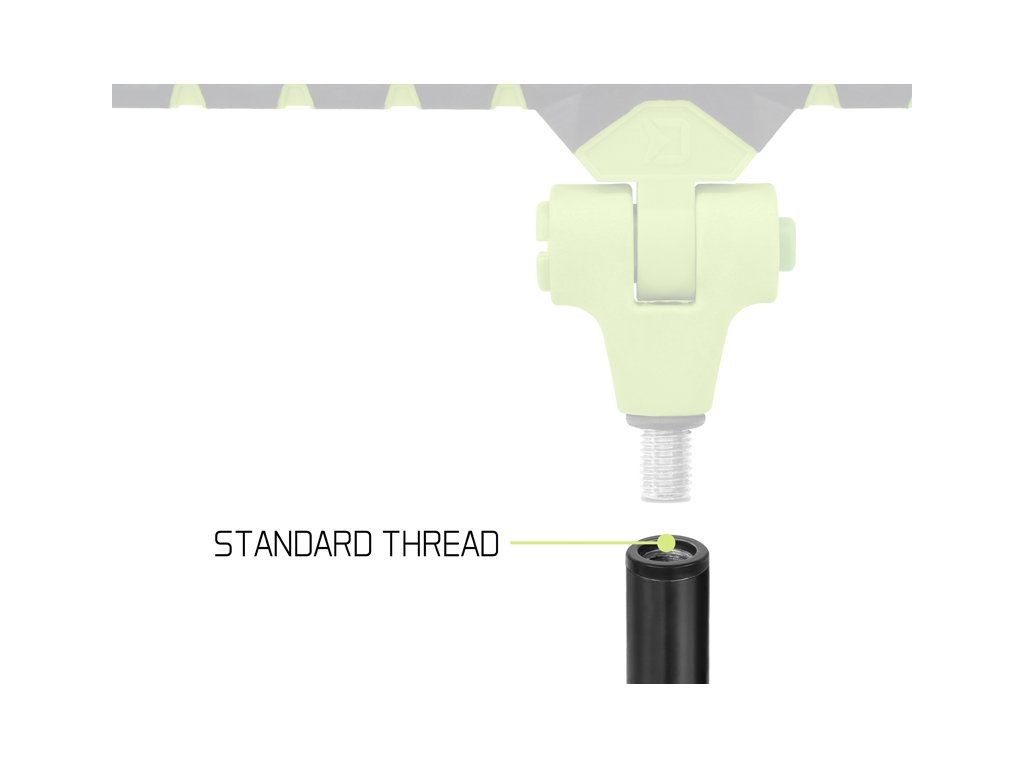 Na obou koncích produktu se nacházejí tyčky umístěné v plastových klipech, které lze posouvat ve vertikální rovině, případně otáčet. Na horním konci tyček se nachází univerzální závit určený pro různé druhy feederových držáků na pruty. Držák je na obou koncích teleskopický, takže jej lze vysunout podle vašich potřeb do každé strany.