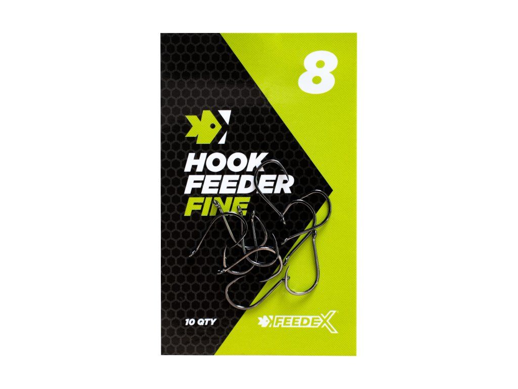 Fine Feeder je velmi jemný a zároveň ostrý univerzální háček, který je velmi chytlavý. Lze jej použít k nastražení mini boilie, pop-up, wafters, menších pelet i partiklu. Použijte bezuzlové vázání a vlasový přívěs, lze jej ale použít i bez vlasového přívěsu k nástrahám, které se připevňují přímo na háček.