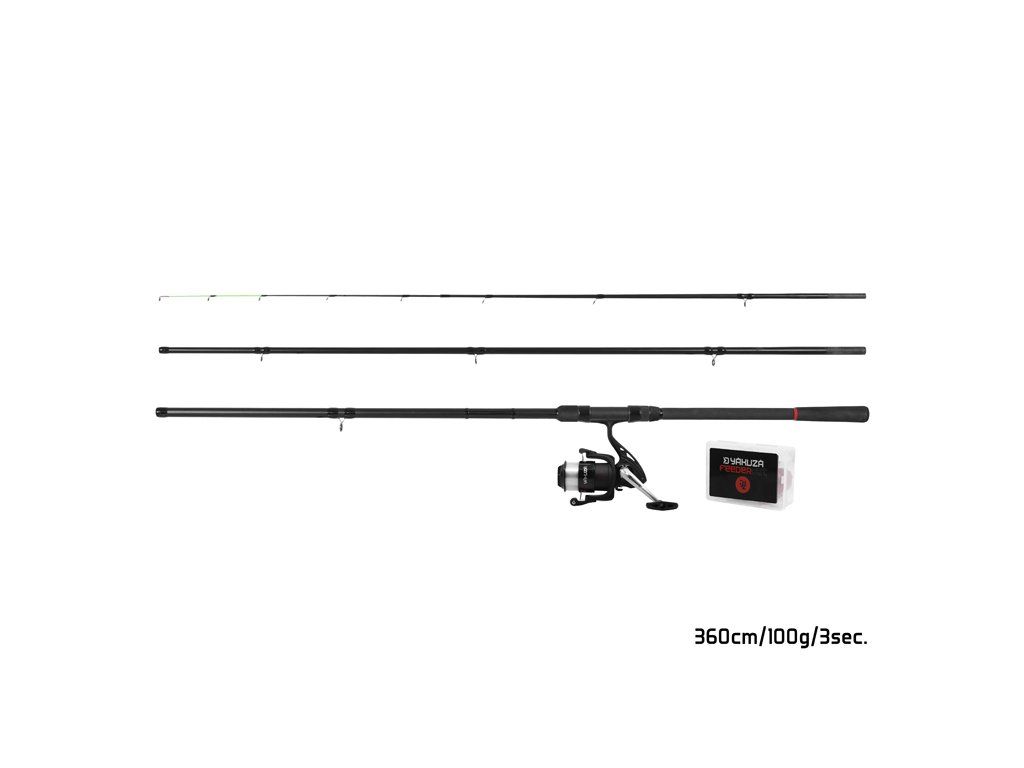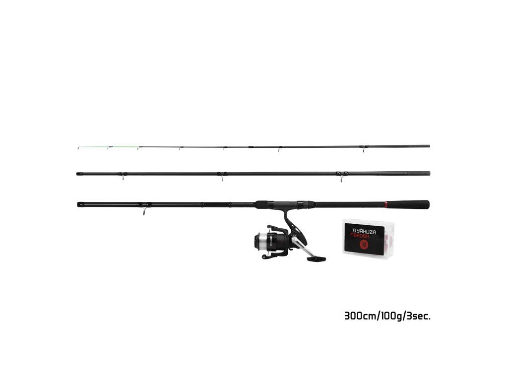 Základem je feederový prut YAKUZA s parabolickou akcí, která vám dokonale umožní vychutnat si zdolávání i těch nejmenších ryb. Prut má samozřejmě dostatečnou silovou rezervu k tomu, aby si poradil i s většími úlovky či častým nahazováním na lovné místo.