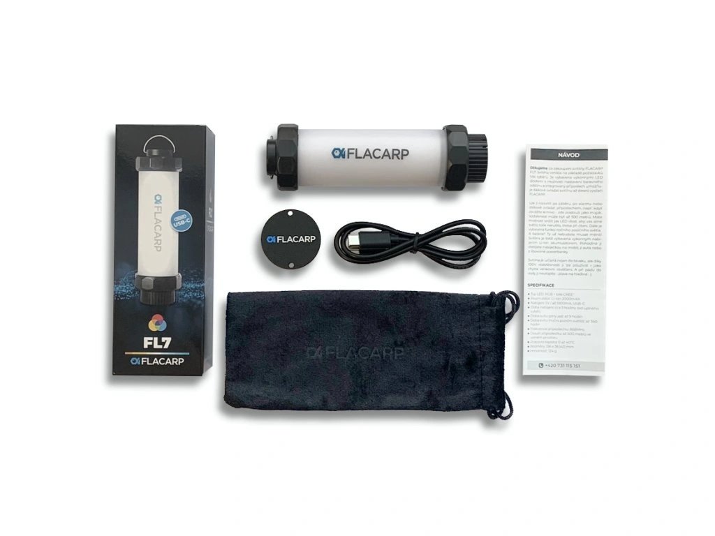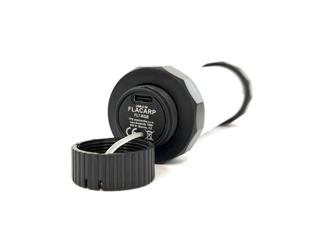 Nová verze oblíbeného vodotěsného, RGB světla s příposlechem FLACARP FL7. Nyní s USB-C konektorem a možností nastavení kromě studené bíle i teplejšího odstínu bílé. Samozřejmostí je i funkce pozičního světla s extrémní dobou svitu až 360 hodin. Funkce, která má uplatnění zejména pro označení lovného místa při nočním rybolovu.