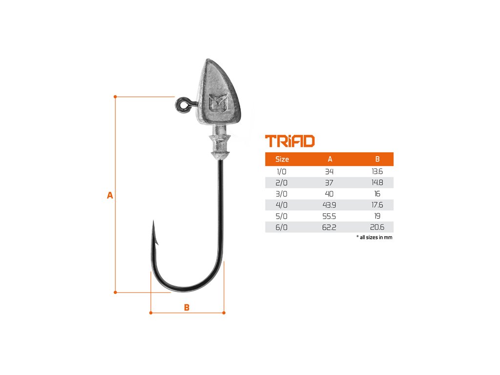 Je originální jig s límečkem pro lov pomocí měkkých umělých nástrah ve sloupci nebo těsně nad dnem. Jak už název napovídá, tvar hlavičky připomínající trojúhelník je velmi aerodynamický a nástraha tak vytváří ve vodě menší odpor. Takový tvar umožňuje hladší a jednodušší pohyb nástrahy vodním sloupcem a její jemnější prezentaci pro opatrné dravce. Tvar hlavičky navíc velmi vhodně doplňuje siluetu nástrahy, díky čemuž vypadá mnohem přirozeněji. K zajištění nástrahy je použit tenký límeček, na kterém se nacházejí dvě řady pootočených výstupků ve tvaru trojúhelníku, které spolehlivě udrží nástrahu na svém místě. Samozřejmostí je velmi pevný háček s ostrým hrotem.