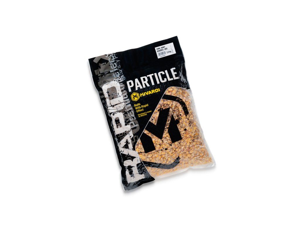 Zrna z pečlivě vybraných odrůd kukuřice, vařená v páře. Tento nejšetrnější způsob tepelné úpravy zachovává přirozenou chuť a vůni. Zároveň nedochází ke ztrátě živin a obsažených atraktorů, jako je tomu při vaření ve vodě. Má jemně nakyslou chuť, způsobenou přidáním malého množství kyseliny mravenčí. Ta působí jako atraktor pro ryby a zároveň plní funkci šetrného přírodního konzervantu. Kukuřice je pomocí speciální technologie balena ve vakuu což zajišťuje dlouhou trvanlivost při zachování maximální čerstvosti a atraktivity. Vakuum zároveň zajištuje maximální absorpci přidaných esencí. Kukuřice je dodávána v několika atraktivních příchutích a je připravena k okamžitému použití. Stačí ji pouze vysypat ze sáčku a přidat k vaší vybrané krmné směsi nebo ji použít samostatně. Tento partikl Mivardi neobsahuje glycerin, monopropylenglykol ani jiné podobné stabilizační látky, které obalují jednotlivá zrna a potlačují jejich přirozenou atraktivitu a zhoršují fungování v chladnější vodě.