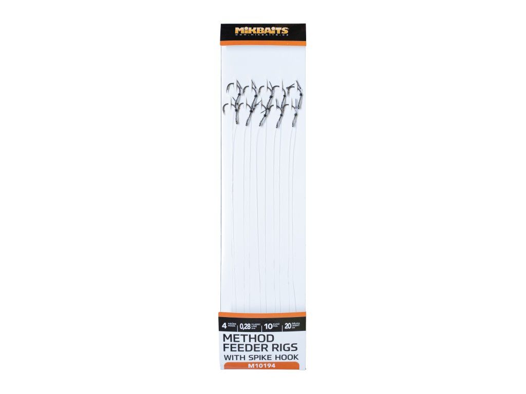 Method feeder návazce se zapichovacím hrotem jsou určené pro malé Pop-up, Wafters, Mini boilie či plovoucí i potápivou kukuřici. K výrobě jsme použili japonské feeder háčky a fluorocarbon o délce 20cm.