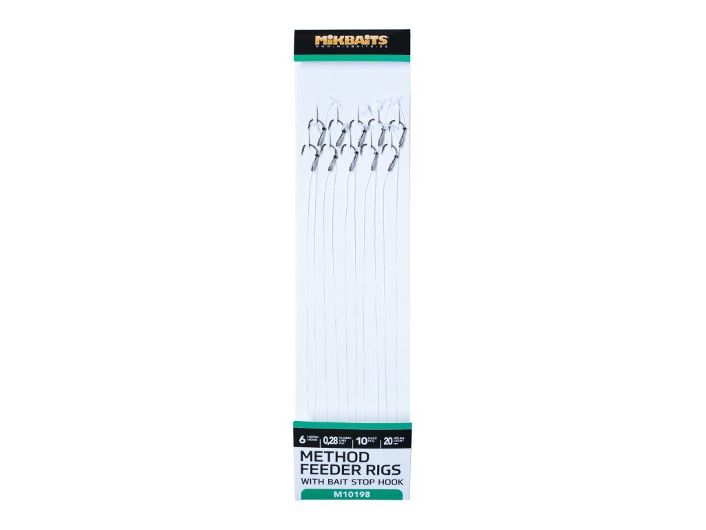 Method feeder návazce s nekonečnou zarážkou jsou určené pro malé peletky (např. 10 mm TactiQ), Mirabel boilie a podobné nástrahy. K výrobě jsme použili japonské feeder háčky a fluorocarbon o délce 20cm.