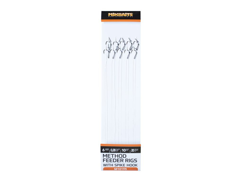 Method feeder návazce se zapichovacím hrotem jsou určené pro malé Pop-up, Wafters, Mini boilie či plovoucí i potápivou kukuřici. K výrobě jsme použili japonské feeder háčky a fluorocarbon o délce 20cm.