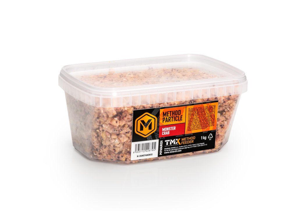 Pečlivě vyladěný mix prémiového drceného partiklu pro lov kaprovitých ryb. Jednotlivé druhy semen jsou vařeny v páře a následně drceny na směs s optimální zrnitostí a lepivostí. Tento nejšetrnější způsob tepelné úpravy zachovává přirozenou chuť a vůni. Při jeho použití je rovněž zachována i maximální atraktivita přírodních složek a nedochází ke ztrátě živin, jako je tomu při vaření ve vodě. Směs má mírně nakyslou chuť, způsobenou přidáním malého množství kyseliny mravenčí. Ta působí jako atraktor pro ryby a zároveň plní funkci šetrného přírodního konzervantu. Method partikl je dodáván v několika účinných příchutích a je plně připraven k použití. Díky své konzistenci výborně drží v krmítku. Po dopadu do vody okamžitě uvolňuje pro ryby neodolatelný mrak jemných částic. Velké množství hrubších kousků pak udržuje ryby delší dobu v lovném místě a napomáhá k selekci větších kusů. Tento partikl Mivardi neobsahuje glycerin, monopropylenglykol ani jiné podobné stabilizační látky, které obalují jednotlivá zrna a potlačují jejich přirozenou atraktivitu a zhoršují fungování v chladnější vodě.