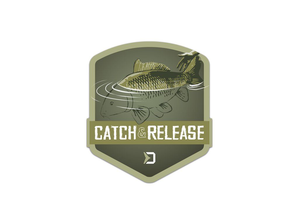 Každý vyznavač moderní kaprařiny ví, že vrátit ulovenou rybu do jejího přirozeného prostředí je ta správná cesta. A právě pro rybáře vyznávající "Catch and Release" je tu nálepka s motivem kapra, kterého lovec pouští zpět do vody.