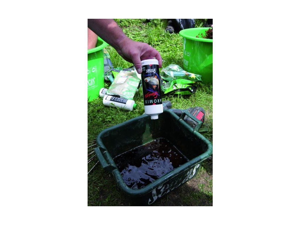 Aromix je tekutý posilovač do krmení nebo partiklu, který představuje velmi účinné sladidlo, na které ryby velmi dobře reagují. Přidává se do vody, kterou se krmení vlhčí, v poměru 10-25% z celkového objemu vody. Na 4kg suché směsi doporučujeme použít 125ml tekutého posilovače.