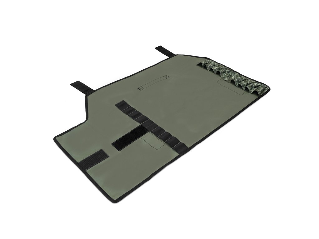 Delphin STICK SPACE je praktický obal na vidličky vyrobený z poměrně hrubé textilie, která je pouze z vnitřní strany pogumovaná, a proto je možné vnitřní stranu i lehce očistit od případných nečistot. Je navržen tak, abychom do něj uložili až 8 ks vidliček i hrubšího průměru, které mají ostrý hrot jako například naše C-STICK nebo D-STICK. Proto jsme spodní část, která je určena pro zasouvání hrotů, vybavili hrubým a zesíleným materiálem. Nyní se vám už nestane to, že by vám ostrý konec propíchl tašku nebo jinak poškodil věci uložené v ní. Obal s vidličkami jednoduše srolujete a zafixujete suchým zipem, který slouží i jako ochrana proti poškrábání. Pouzdro má na vrchní straně našitý popruh, který slouží jako rukojeť usnadňující transport.