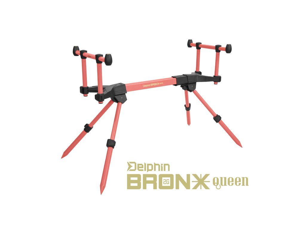 Při navrhování jsme neskončili jen při redukci rozměrů, ale rozšířili jsme také barevné provedení tohoto modelu, kterým rozšiřujeme sérii pro něžné pohlaví QUEEN. Rodpod Delphin BRONX 2G STALX QUEEN v provedení v růžové barvě poskytuje kvalitu zpracování a použitých materiálů výrazně převyšující běžně dostupné rodpody z dané cenové kategorie. Rodpod se vyznačuje zejména nízkou hmotností, vysokou stabilitou a kompaktností. Rodpod má výrazně zesílené upínání hrazd včetně zesílení celého klipového mechanismu. Taková vylepšení výrazně zvyšují životnost systému a zjednodušují jeho nastavování. Pozornému oku určitě neujde, že celý mechanismus se nese v designu ploutve našeho loga. Díky unikátnímu systému skládání se jednoduše vejde do malého textilního pouzdra, a tím zabírá jen minimum místa ve vaší rybářské výbavě. Samotné pouzdro je součástí základního balení.