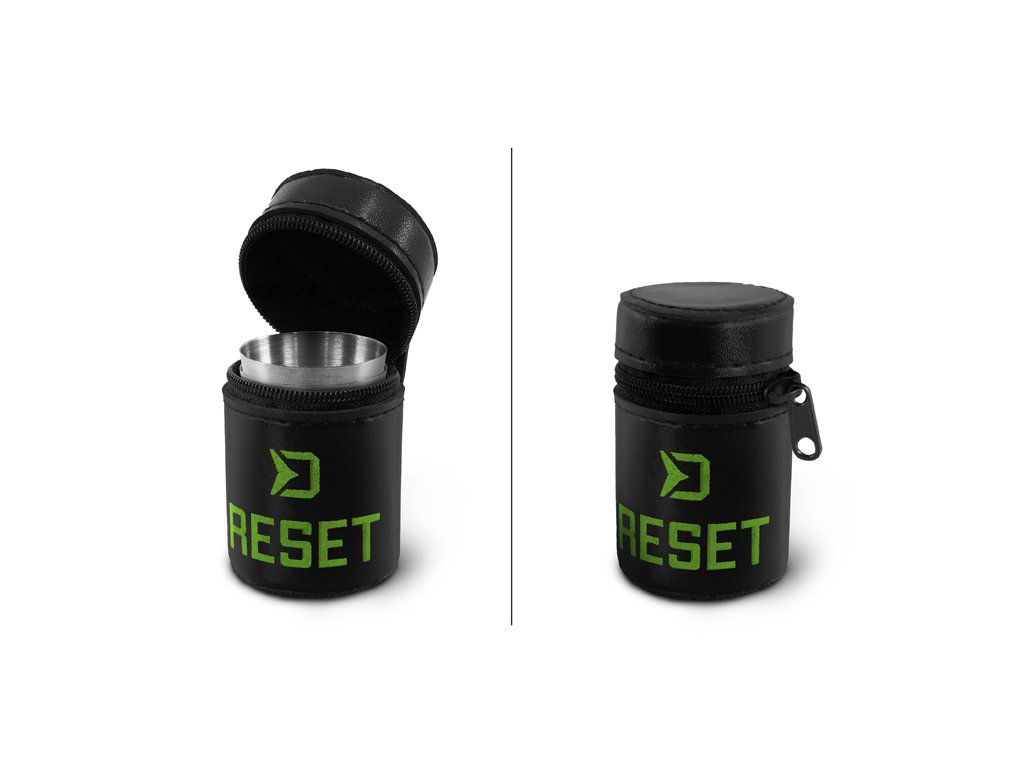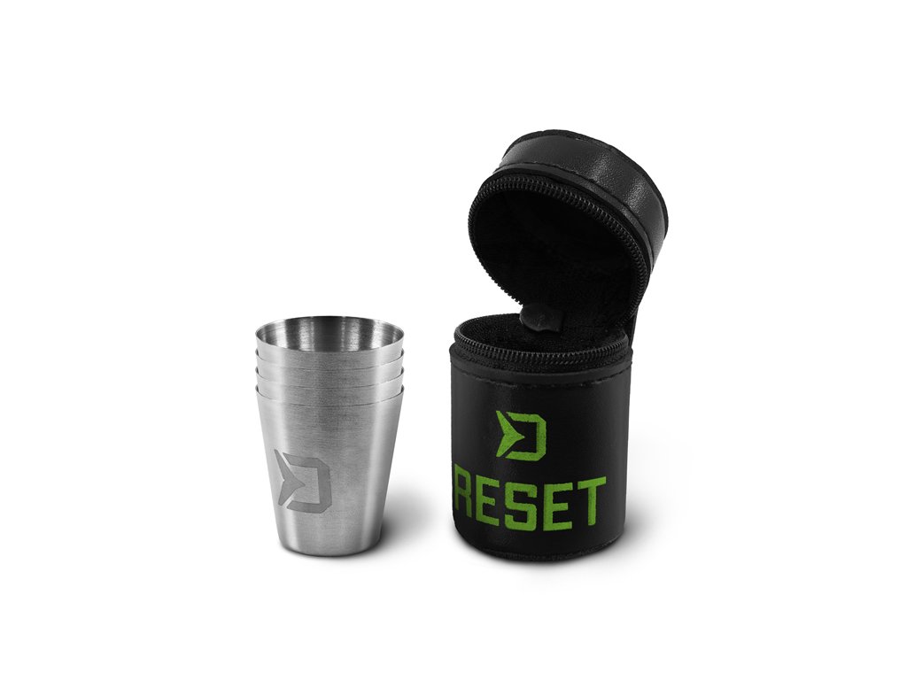 Vyměňte své nepraktické skleněné pohárky za kompaktní nerozbitný set v praktickém a pěkném balení. Cestovní sada RESET se skládá z jednoho praktického koženkového obalu a čtyř nerezových pohárků o objemu 30ml. Samozřejmě set není určen pouze pro rybáře, ale díky svému praktickému balení potěší turisty, myslivce, nebo se výborně hodí na chatu.