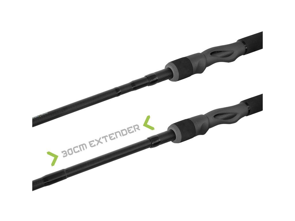 Největší předností modelu XTENZ je možnost rychlé změny délky prutu bez nutnosti převazování koncové montáže či rozebírání dílů. Důmyslně navržený teleskopický systém, umístěný nad sedlem navijáku, umožňuje snadné a rychlé prodloužení nebo zkrácení prutu dle aktuálních podmínek. V případě potřeby stačí otočit výsuvný díl a vysunout jej. Mechanismus drží pevně ve vysunuté i zasunuté poloze, čímž spolehlivě eliminuje jakýkoli nežádoucí pohyb během nahazování nebo zdolávání ryby. Díky této inovativní funkci se XTENZ hravě přizpůsobí měnícím se podmínkám u vody, které často vyžadují změnu délky prutu.