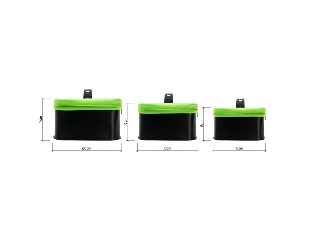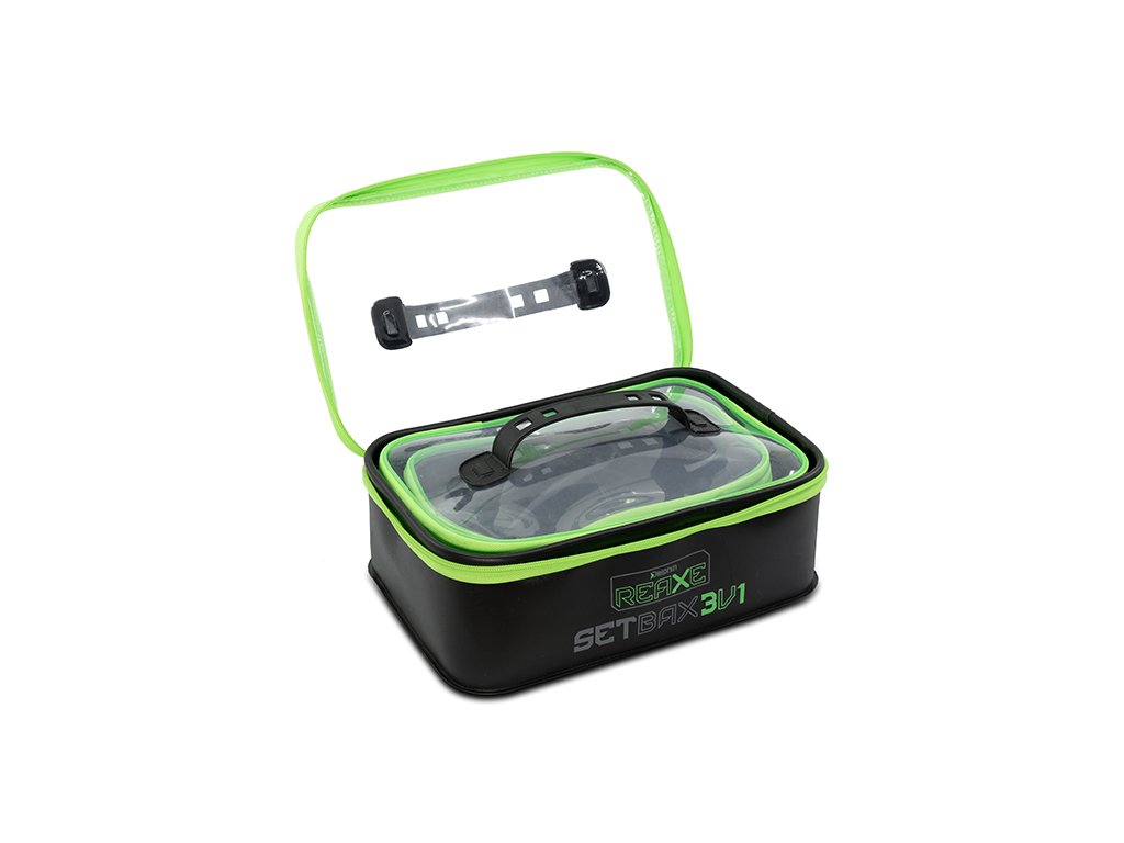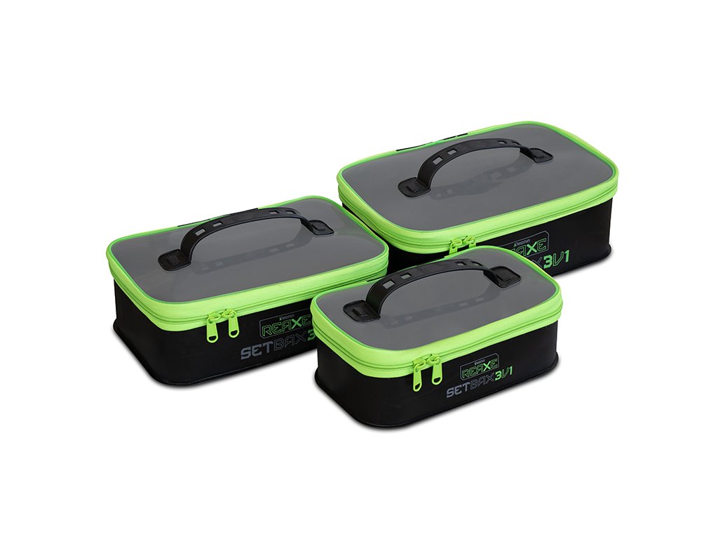 Delphin REAXE SetBAX je praktická sada tří EVA tašek obdélníkového tvaru, které poslouží k uskladnění různého feederového vybavení nebo bižuterie.