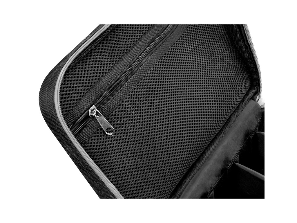 Jedinečná taška, navržená speciálně na uschování a transport feederových krmítek. Pevné, silně polstrované stěny umožňují do ní sbalit opravdu velké množství krmítek potřebných pro váš lov. Vnitřní prostor je rozdělený čtyřmi přepážkami. Všechny jsou však uchyceny pomocí suchého zipu, což znamená, že jsou odnímatelné / posouvatelné. Tato výhoda umožňuje dokonalé uspořádání vnitřního prostoru a vytvoření přihrádek podle potřeb. Navíc se na vnitřní straně víka nachází velká síťovaná kapsa, umožňující uložení dalších rybářských drobností, případně dokladů. Tak jak to bývá při taškovině Delphin již standardem, i FEEDCASE je opatřena kvalitními zipy s plastovými taháčky, které usnadňují otevírání a zavírání. Na pohodlné přenášení tašky poslouží rukojeť s EVA pěnou, která je umístěna ve vrchní části. Právě to je důležitý detail, protože nedochází k překlápění tašky a možnému míšení obsahu. Specifický design tomuto produktu dodává bordó barva víka, charakteristická pro naše produkty určené speciálně pro feeder.