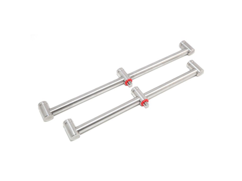 Špičkové elegantní hrazdy vyrobené z nerezové oceli, které zaručují bezpečné a stabilní uložení vašich prutů. Na jejich výrobu byl použit pevný nerezový materiál z UK o tloušťce 13,9 mm. V nabídce jsou hrazdy na 2, 3 i 4 pruty, pevné i výsuvné a na jednu vidličku, či na dvě, tzv. SNAG. Některé mají navíc speciální Dual Lock systém upínání, díky kterému skvěle zafixujete hlásiče i rohatinky. Balení: 2 ks