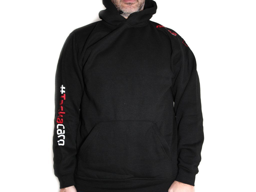 Černá stylová mikina je z kvalitního a příjemného materiálu. Má jednu velkou "klokaní" kapsu a dobrou kapucu.