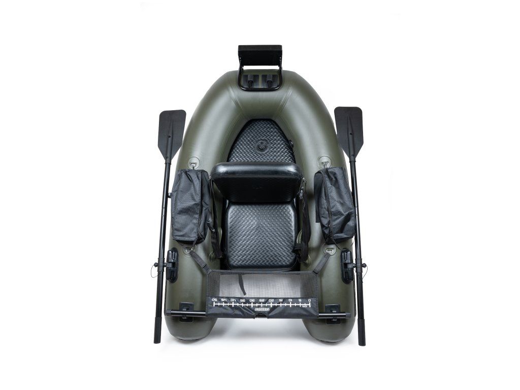 Belly boat YACCUZA Hunter Camou Green je díky své 170 cm délce, 116 cm šířce a čtyřkomorovém nafukovacím systému vysoce stabilní, pohodlný a bezpečný. Je vyrobený z extrémně pevného silnostěnného 1100 DTEX polyester materiálu. Ze spodu, z boku i na konci obou válců má bezpečnostní lišty, které ho chrání před ostrými kameny a dalšími překážkami. Uvnitř mezi válci je nafukovací podlážka a na ní je přidělaný nafukovací sedák, jehož sklon můžete pomocí popruhu snadno nastavit, abyste se v belly boatu cítili komfortně. V přední části je umístěná odnímatelná příčka a síťovaná podložka s metrem na změření a zdokumentování úlovku. Za sedačkou je velký prostor na tašku nebo jiné předměty. Vzadu je přidělaný držák (zrcadlo) elektromotoru, který lze i sundat, po stranách jsou pádla včetně jejich úchytu, na bocích dvě objemné tašky na nástrahy nebo příslušenství. Ze spodku člunu jsou transportní popruhy pro snadné přednášení na zádech. Samozřejmostí je přepravní taška, sada na opravu a pumpička. Belly boat lze dovybavit příslušenstvím Fasten (držáky na obrazovku či sondu echolotu, držáky prutu, držáky na kamery a podobně).