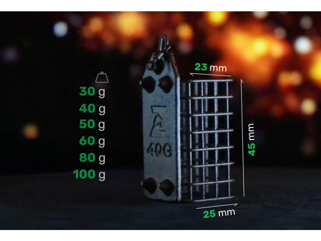 ZFISH Spike Feeder je otevřené,drátěné, feederové krmítko s hroty na spodní straně v té nejvyšší možné kvalitě materiálu i zpracování. Můžete si být jistí, že tato krmítka díky svému naprosto přesnému vyvážení, vždy dosednou ke dnu tak, jak mají a v proudu budou spolehlivě držet na svém místě! Další výhodou je, že je provedeno v přírodní hnědé barvě s černým žíháním, takže snadno splyne se dnem a ryby mnohem méně ruší nebo plaší. Jedná se tedy o velice univerzální, středně velké, hranaté, feederové krmítko na řeky do proudů.